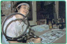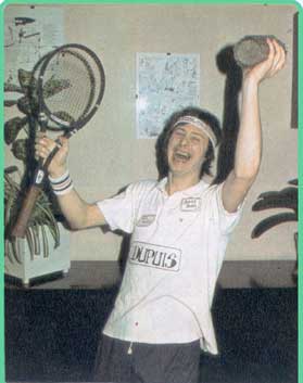 matériel est-il important ? - Oui, dans le sens où il faut choisir un équipement propre au jeu et au physique de chacun. Interviennent dans le choix d'une raquette: son poids, la répartition de celui-ci dans le cadre, enfin la tension exercée dans les cordages. (plusieurs qualités de cordages existent, les meilleurs étant les boyaux. Jamais de chat comme le veut la légende! !). - Joues-tu pour ton plaisir ou plutôt dans une optique de compétition ? - Euh... je joue plutôt pour... LA COMPETITION ! D'ailleurs, toutes les nuits, je bats Borg en rêve! (Ici, Benn rit fort et haut... mais nous ne saurons jamais de qui). Il faut avouer que le tennis est un sport difficile à pratiquer sans compétition. Ce jeu ne devient agréable qu'après l'assimilation d'une certaine technique. Il est donc normal qu'une fois acquise on désire la mettre à l'épreuve. |